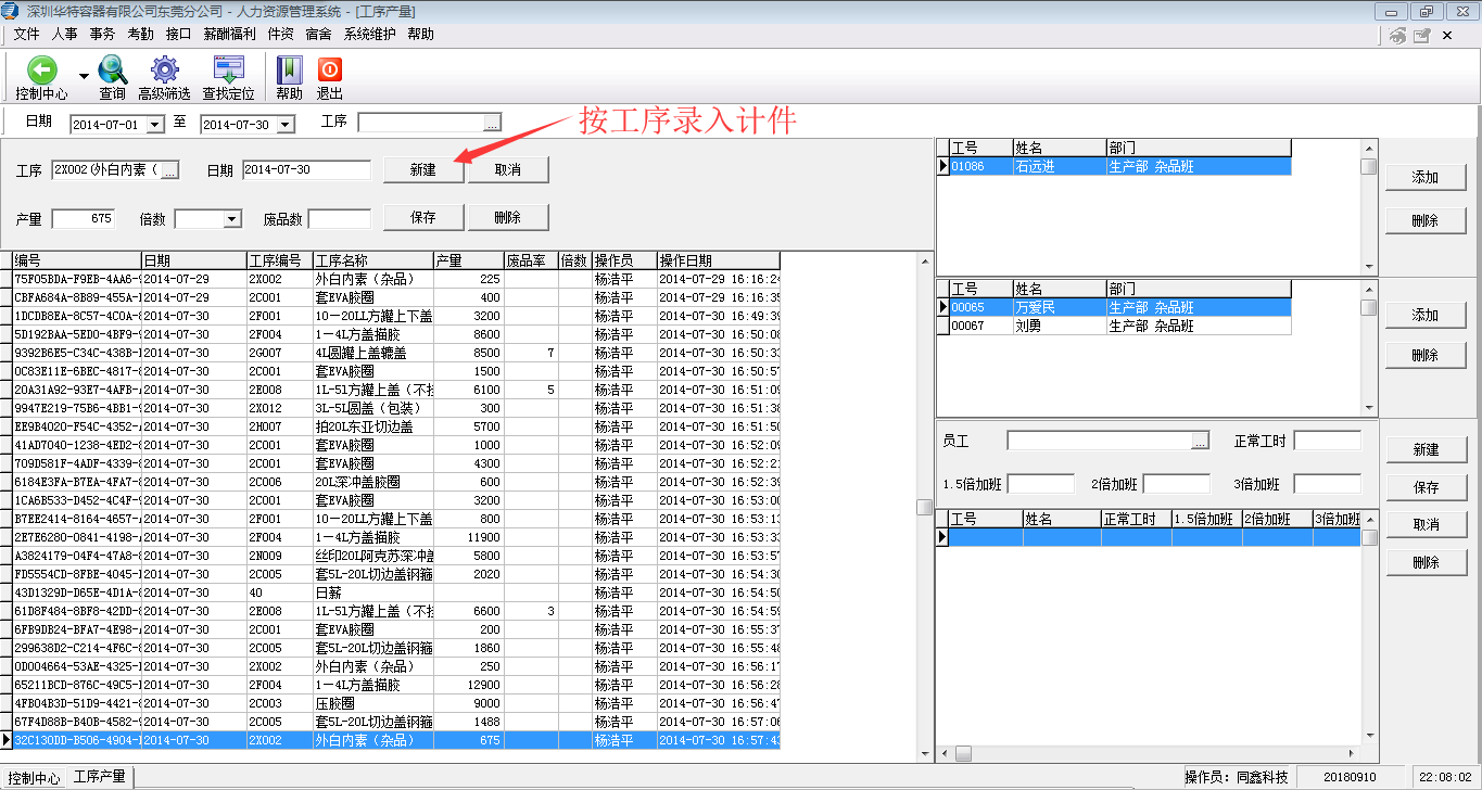 妙用之一,定制了按工序錄入每日計件資料,實現按每日工序的產量計算計件工資,輕松解決繁瑣工序產量多、節假日出勤的倍數及廢品數核算難的問題等,如下;