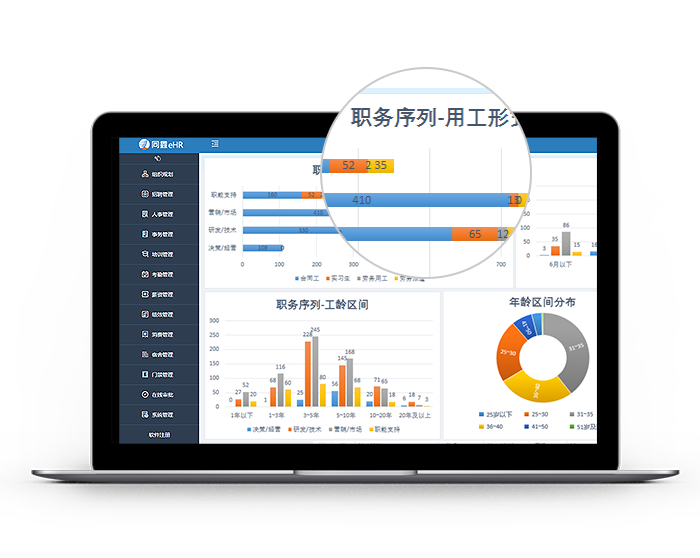 ● HR看板:多維度圖形化展示HR統計分析信息;