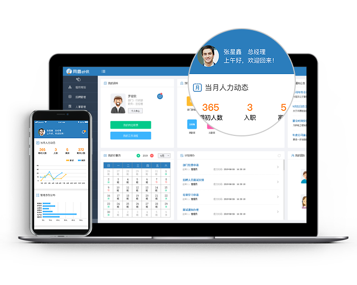 ● HR看板:多維度圖形化展示HR統計分析信息;